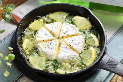 夏に食べたい、さっぱり味!【しらすとレモンのカマンベールアヒージョ】