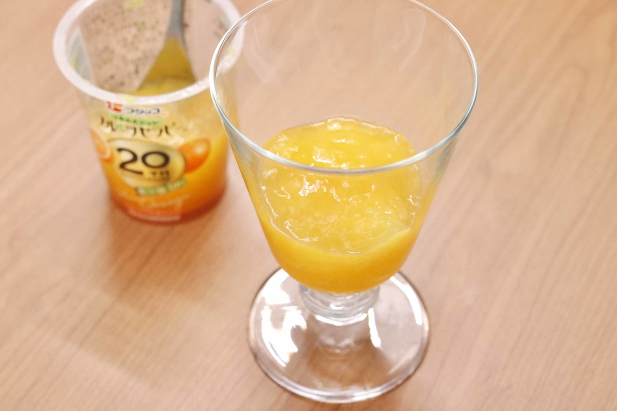 ちなみに違うメーカーさんのゼリーでも試したんだけど、一番フルーツセラピーが美味しかったです。果実感がすごいのと、ジュレ状なのでドリンクとしてちょうどいい柔らかさなんだよね!そして、オレンジ以外に桃味で作ったら色味も可愛くてよかったです