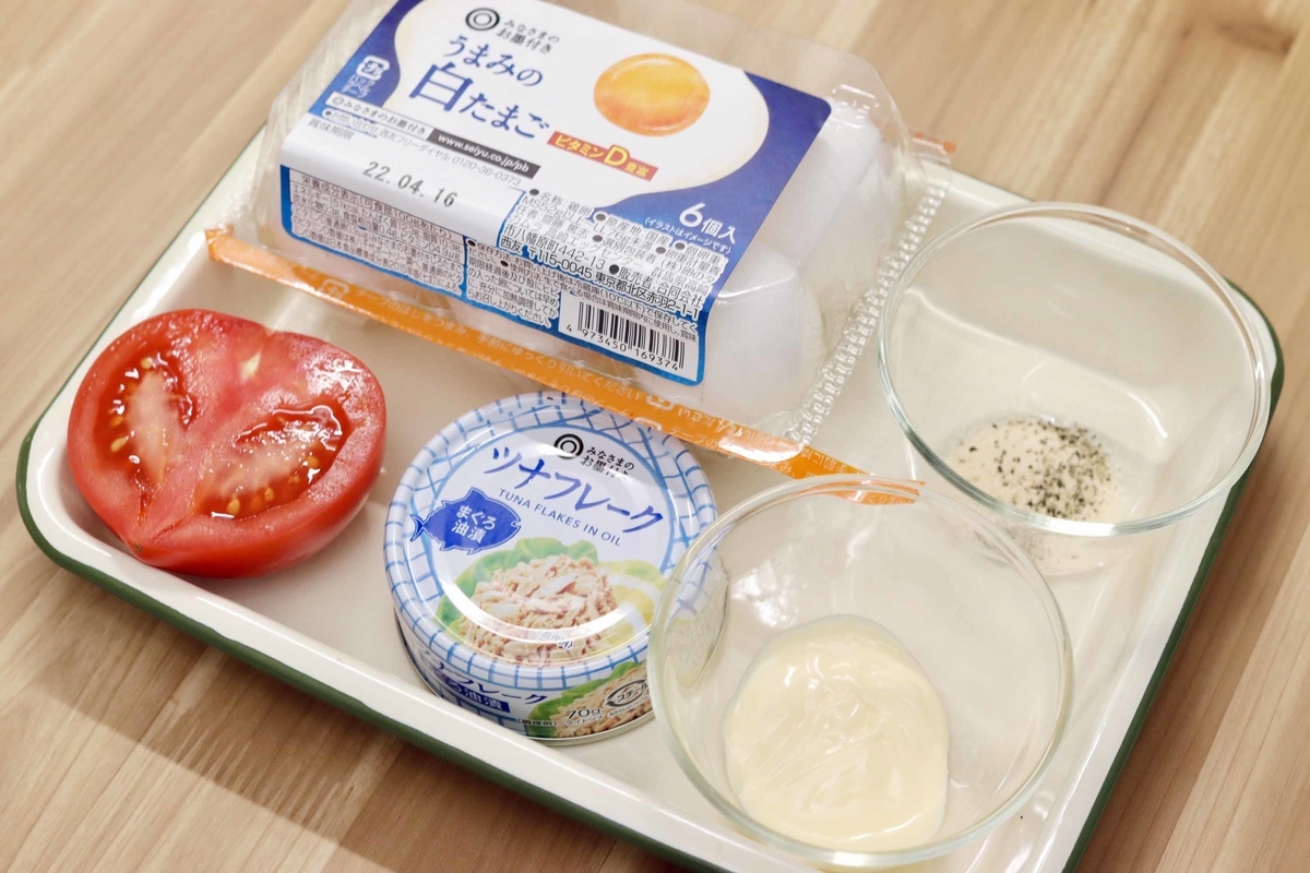 また、ツナトマたまは一瞬でできちゃう優秀おかず。今回はツナを入れていますが、なくても十分においしいです。お好みでピザチーズを加えても!