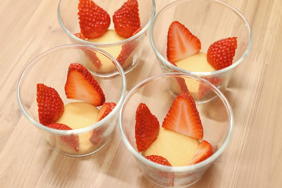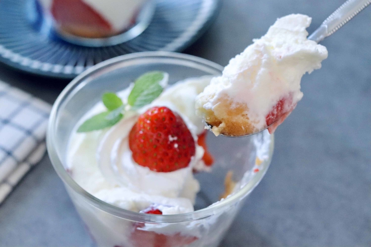 本日は混ぜるだけでできちゃう、まるでショートケーキのようなグラスケーキのレシピをご紹介しちゃいます。