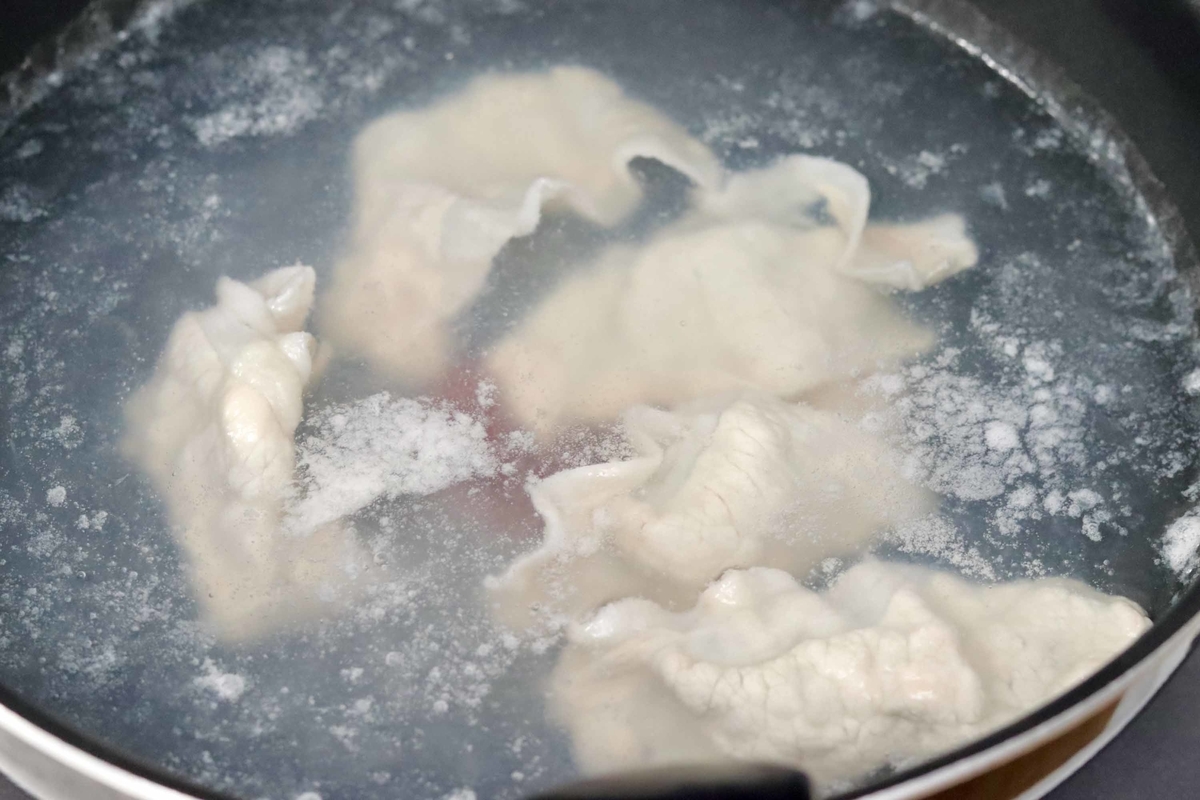 沸騰したたっぷりのお湯で色が変わるまでささっと茹でたら