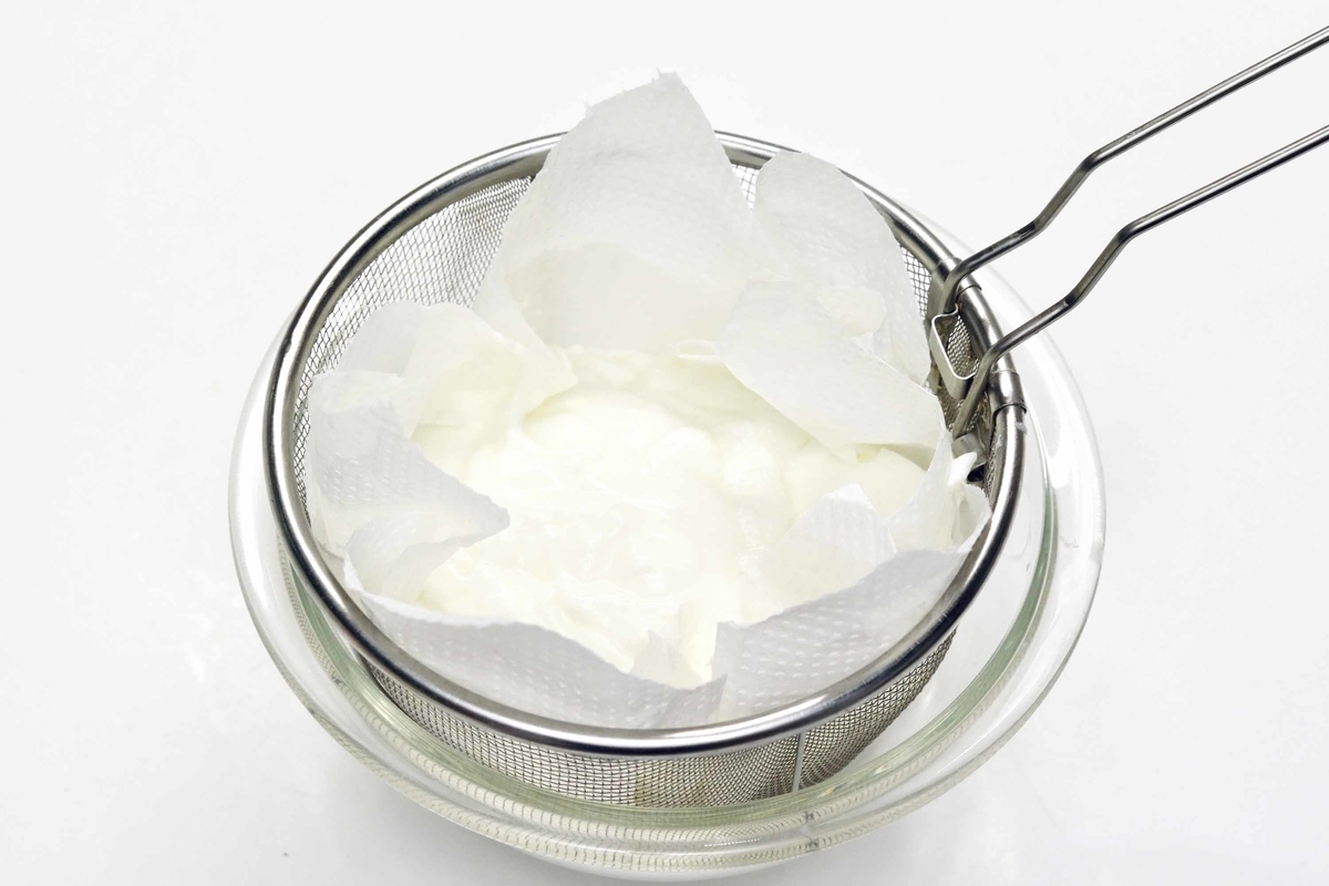 無糖ヨーグルト400gを一晩水切りして200gにしたら