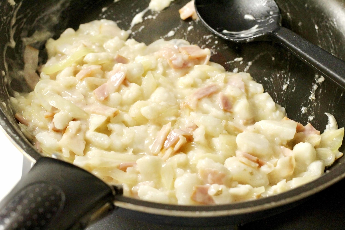 ここで固まりが残っていると「シャキッ」とした食感が残るグラタンになるのですが、むしろそれが好きな人は、ちょっぴり大雑把につぶすのも◎
