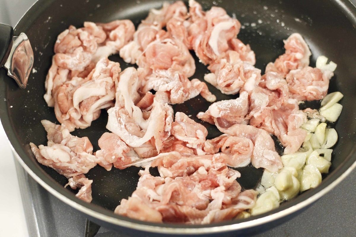 まずは豚肉に塩を振って軽く揉み、片栗粉をまぶしておきましょう