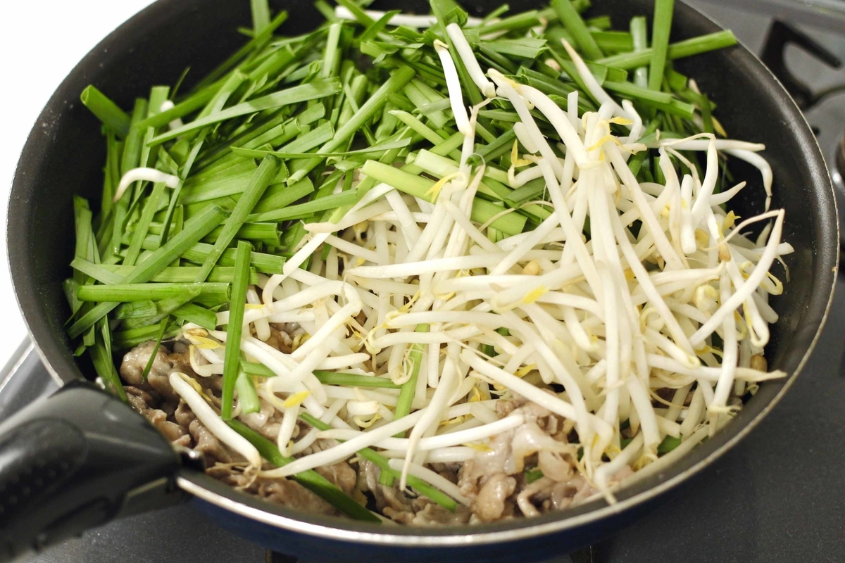 ニラともやしはあっという間に火が入るし、ゆっくり炒めてしまうとどんどん水分が出てくるので、強火で手早く炒めるのが美味しさの秘訣✌