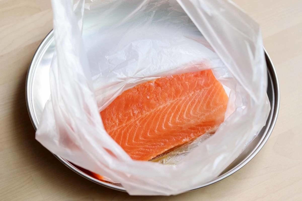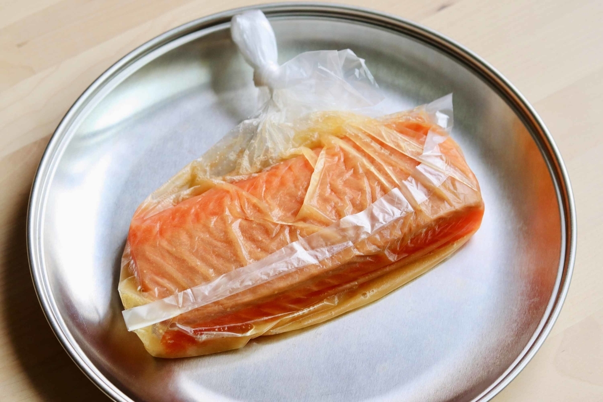 こうすることで、臭みと水分が抜け、ねっとりと美味しいサーモンになります。