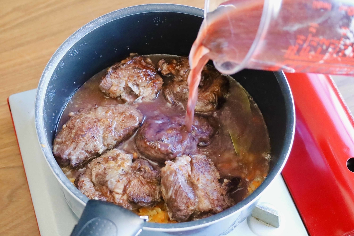 2時間煮込めば、しっかり肉質が柔らかなワイン煮込みに!まさにお店で食べる味わい…