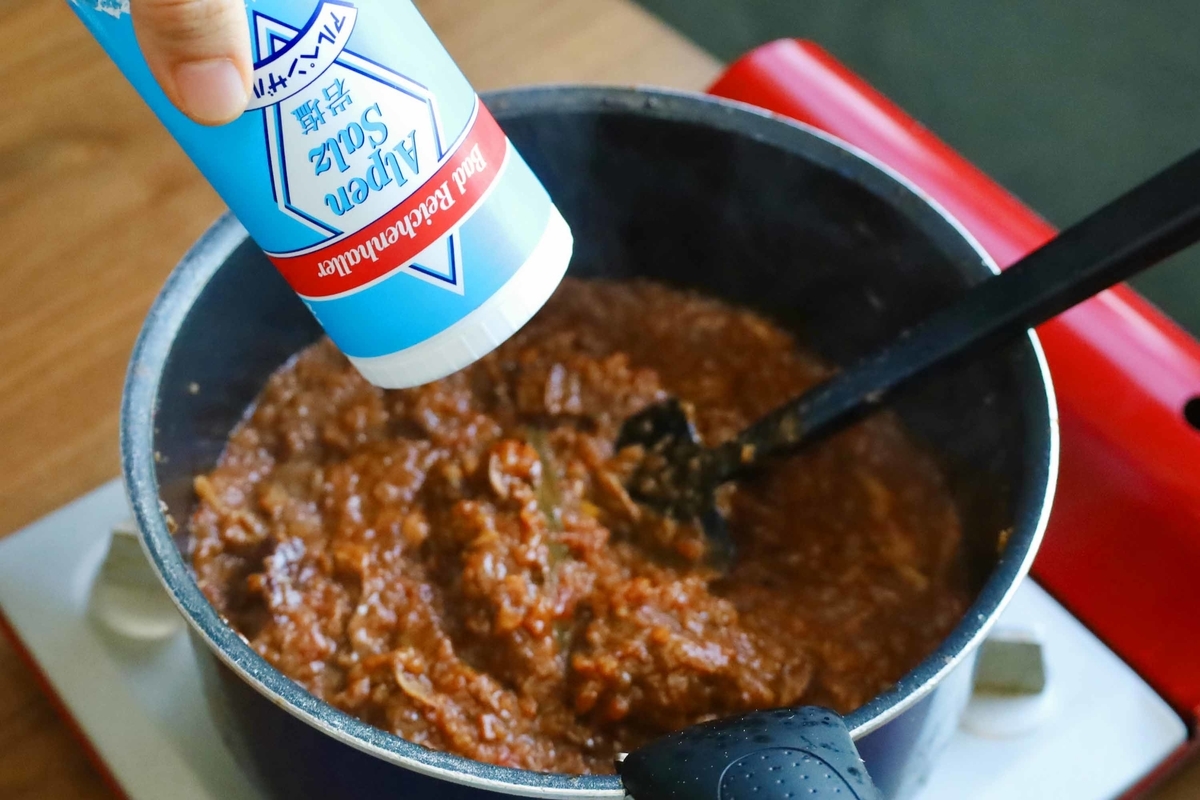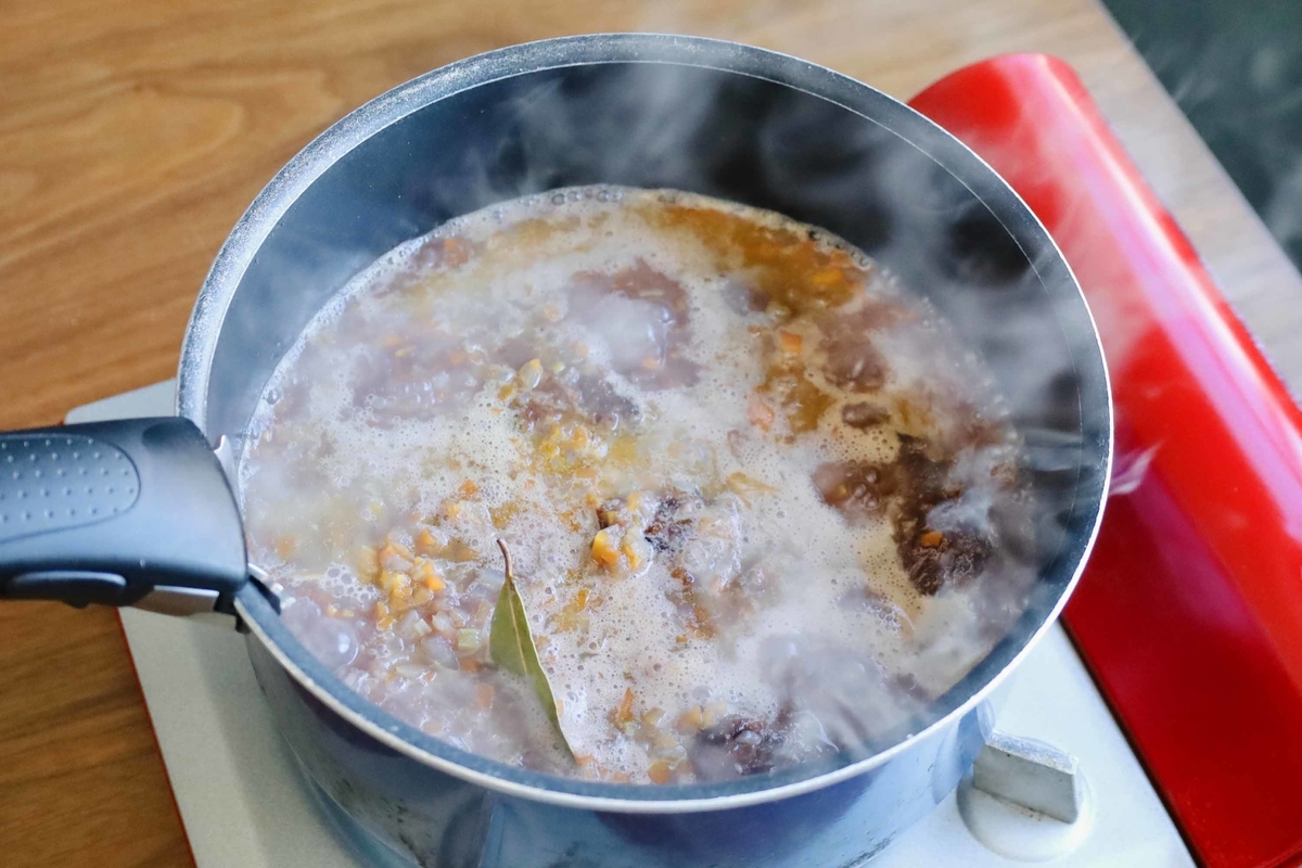 あとはしっかり野菜をソフリット(香味野菜のみじん切りを油でじっくり炒め煮した香味ベースのこと)するのが大事!野菜から、驚く程うま味と甘みが出ます。自分はずっと炒めるのではなく、途中から蓋をして放置するやり方なのでお手軽!