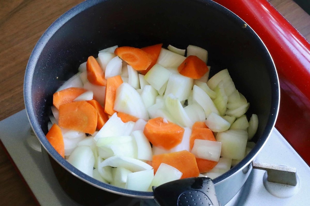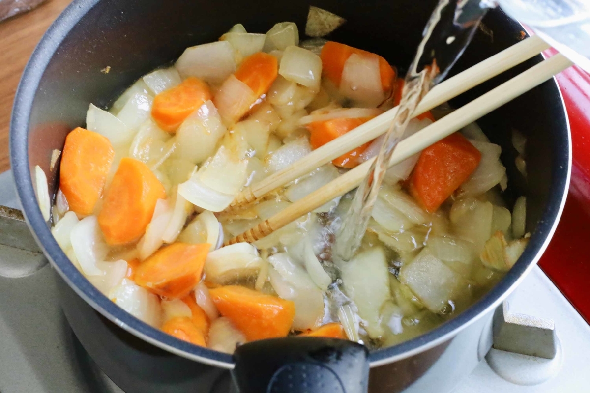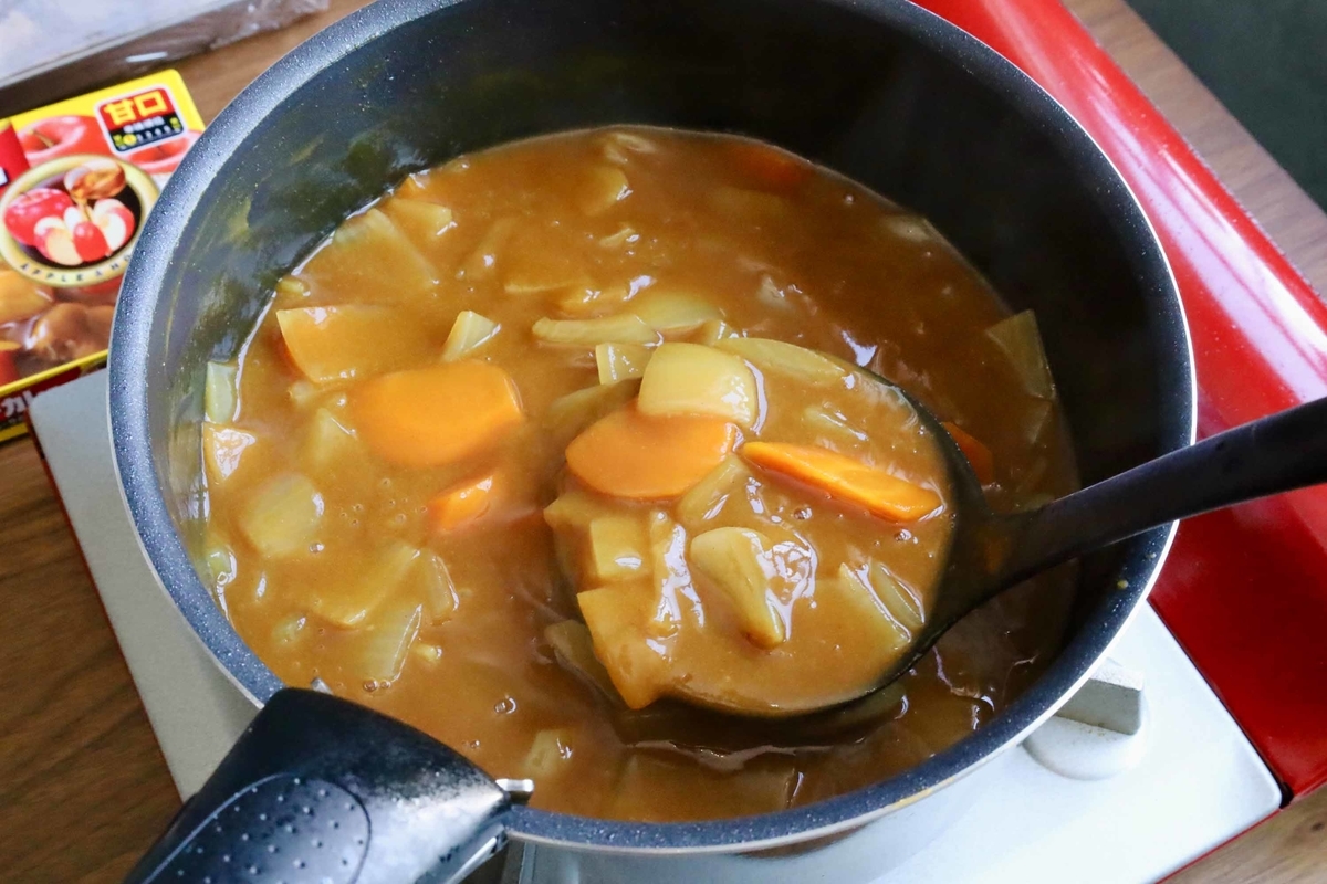 一旦火を止めてカレールウを割り入れ、よ~く溶かしたら
