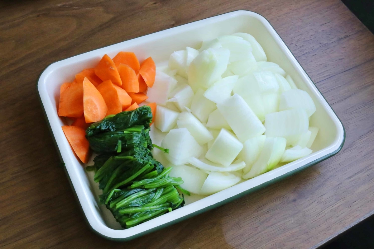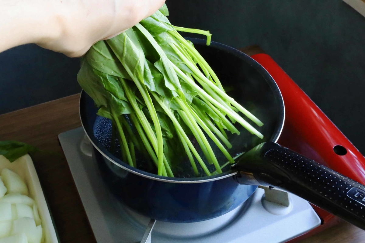 茹でておいたほうれん草を加えてひと煮たちすれば、ベースのカレーは完成✨
