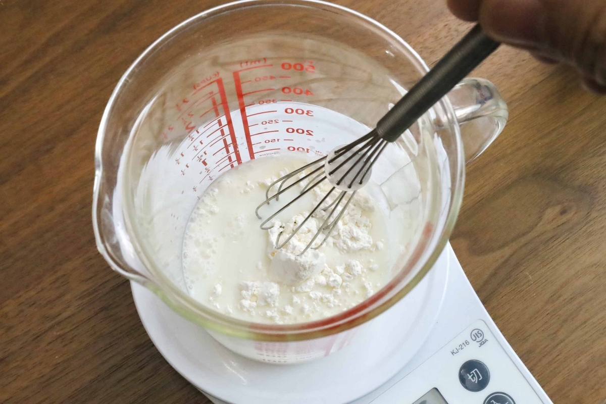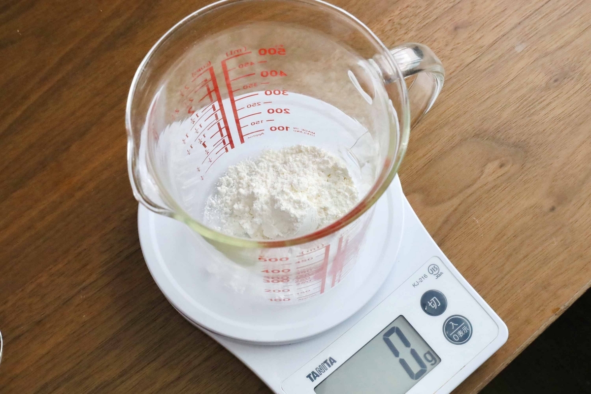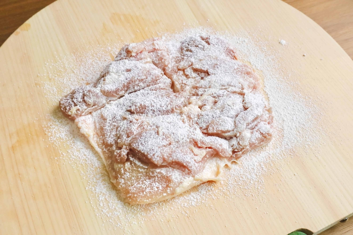 茶こしなどを使ってうっすら薄力粉をまぶします