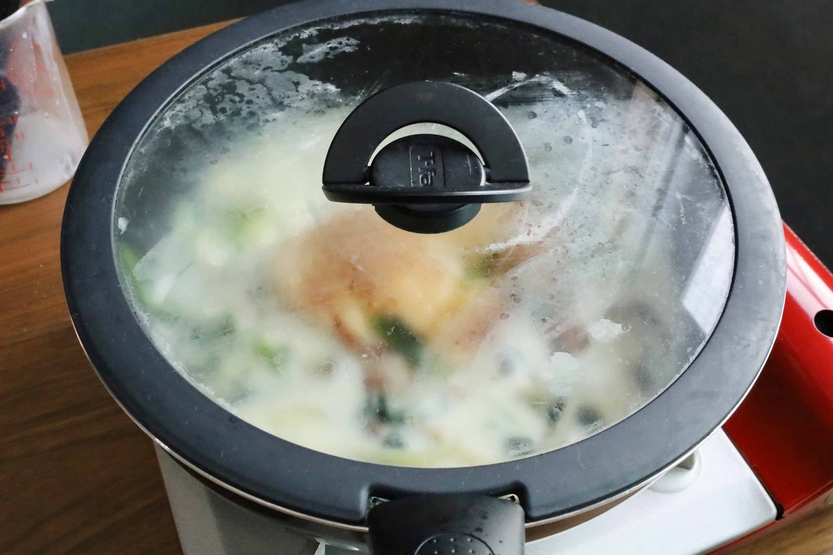 加熱が終わったら蓋を取り、お好みの水分量まで煮詰めます