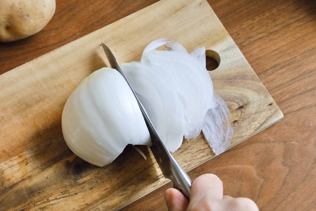 まずは新玉ねぎをスライサーor包丁で薄切りにし