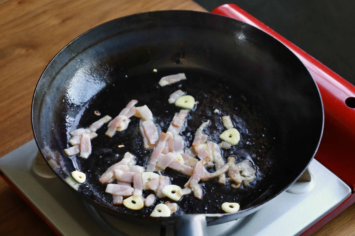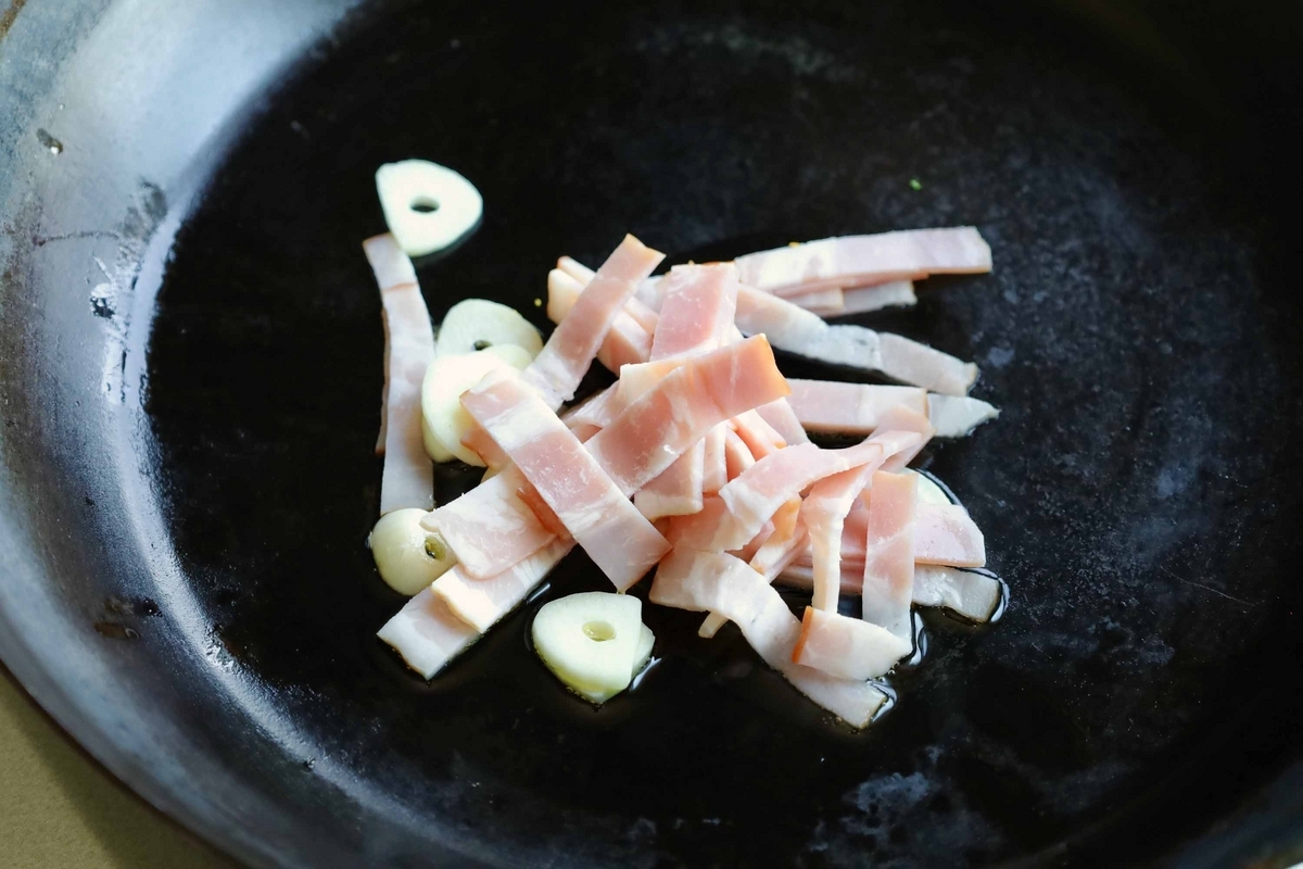 ベーコンとにんにくが、風味も食感もすごく良いアクセントになっているので、ちょっぴり手間だけど絶対上に乗せた方がいいです👍✨あと、黒胡椒もめっちゃ合うので、大人はガシガシ振ってほしい!!!
