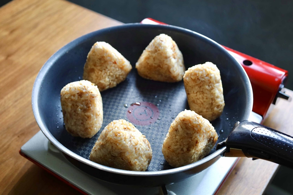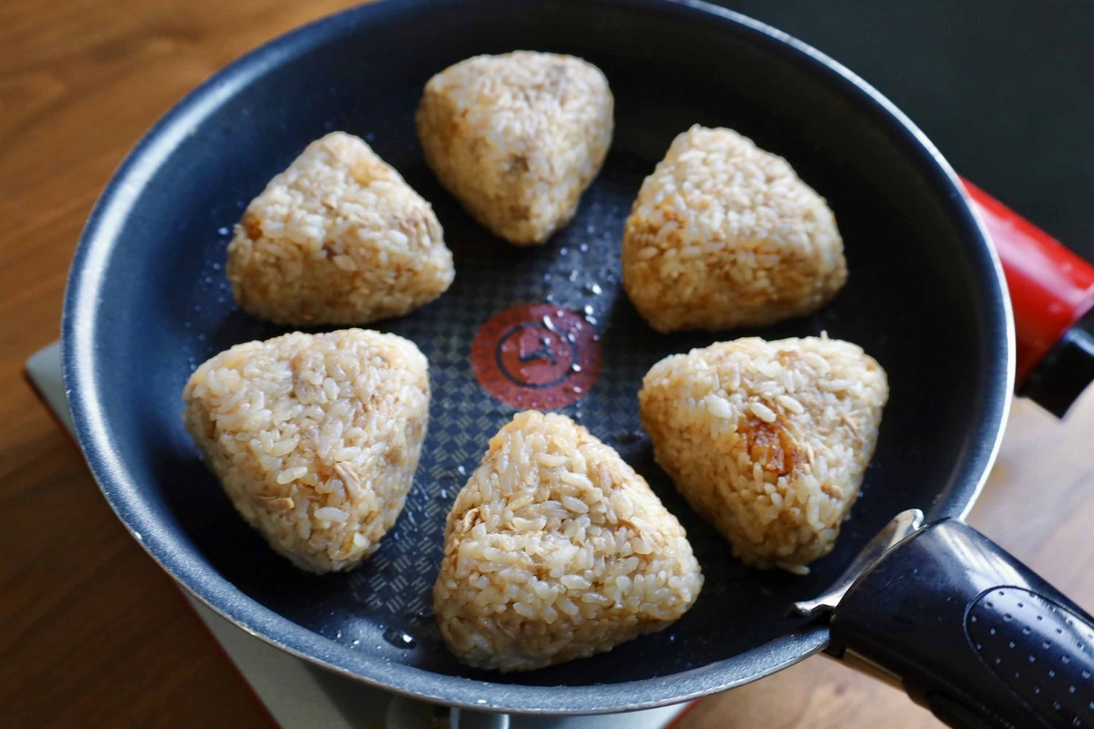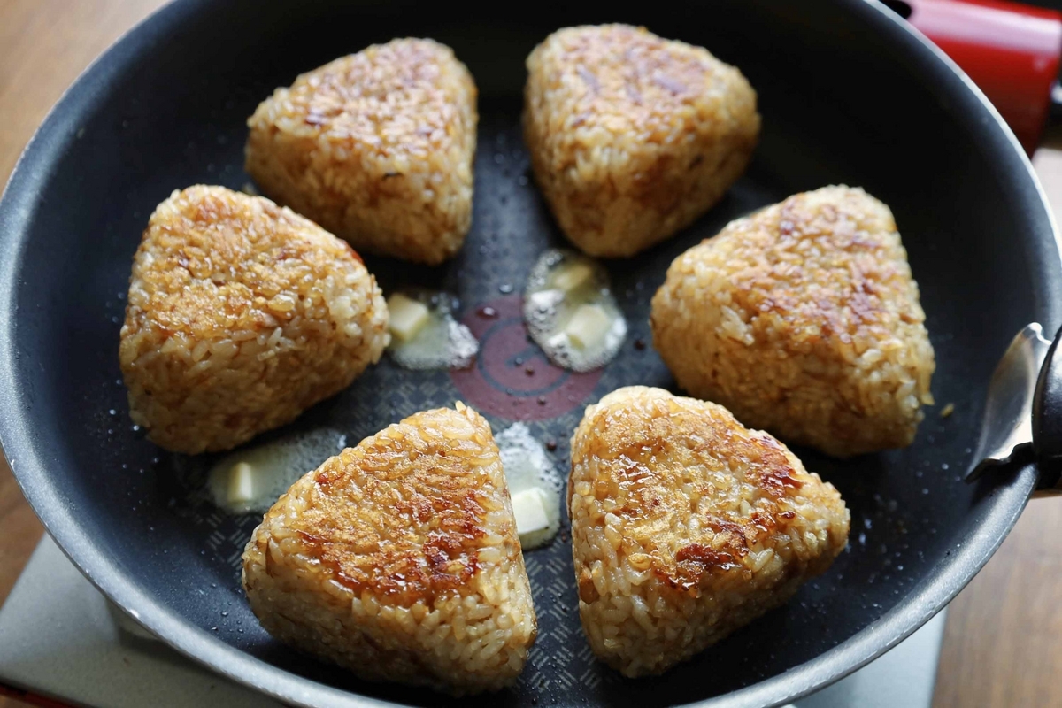 薄く油を引いたフライパンの上におにぎりを並べたら