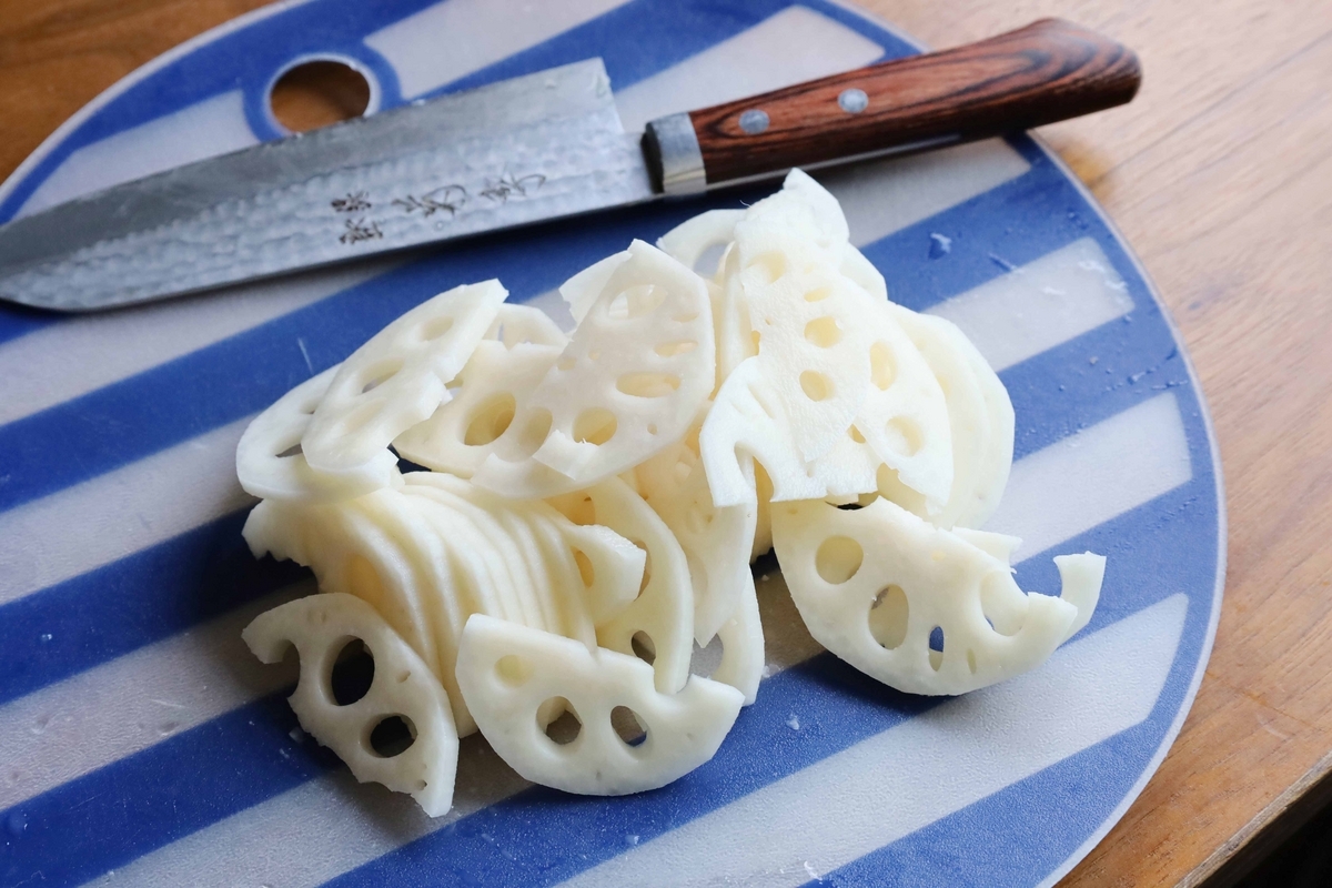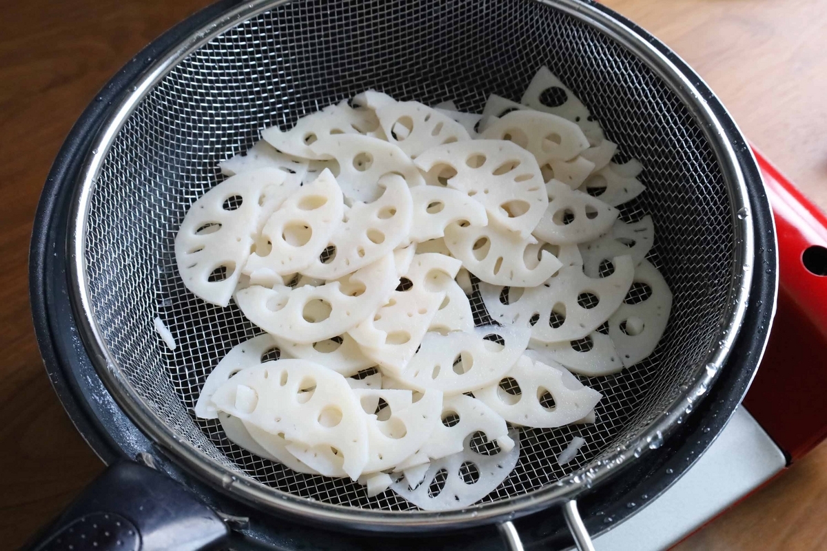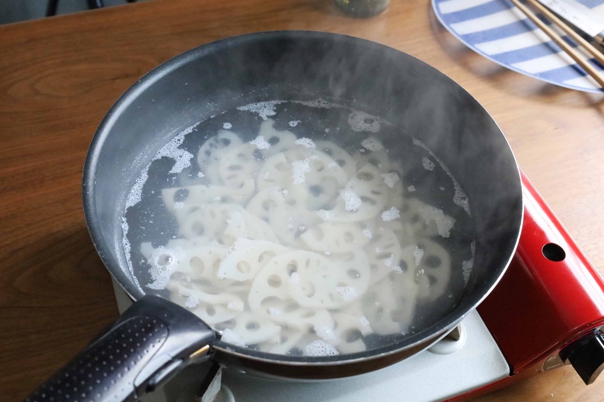 たっぷりの水に塩を加えて沸騰させたら、レンコンを加えて茹でましょう