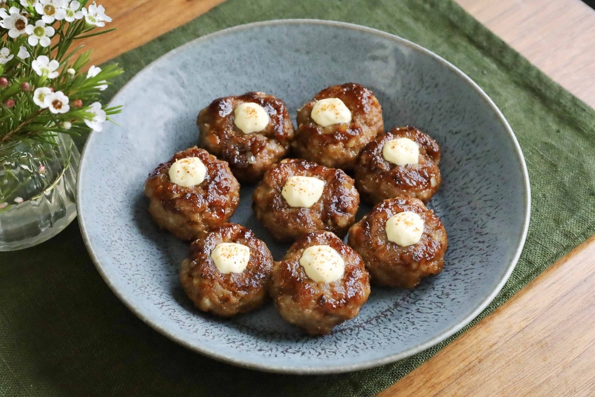 簡単に言えば、ちっちゃめハンバーグにマヨポケットを作って焼き、焼き肉だれを絡めて最後にマヨネーズを乗せた感じ🙌美味しい予感しかしないでしょ?