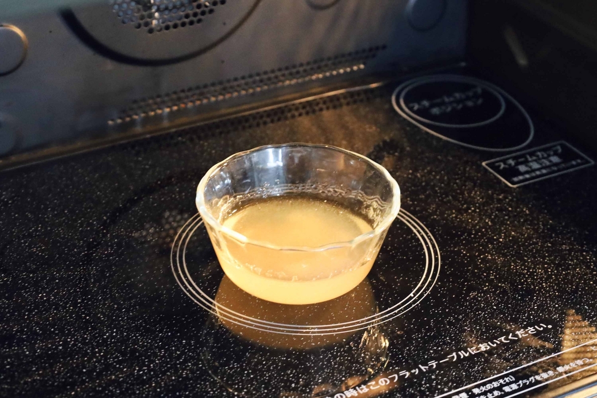 ゼラチンがふやけたら、500wでの電子レンジで20秒レンチン!