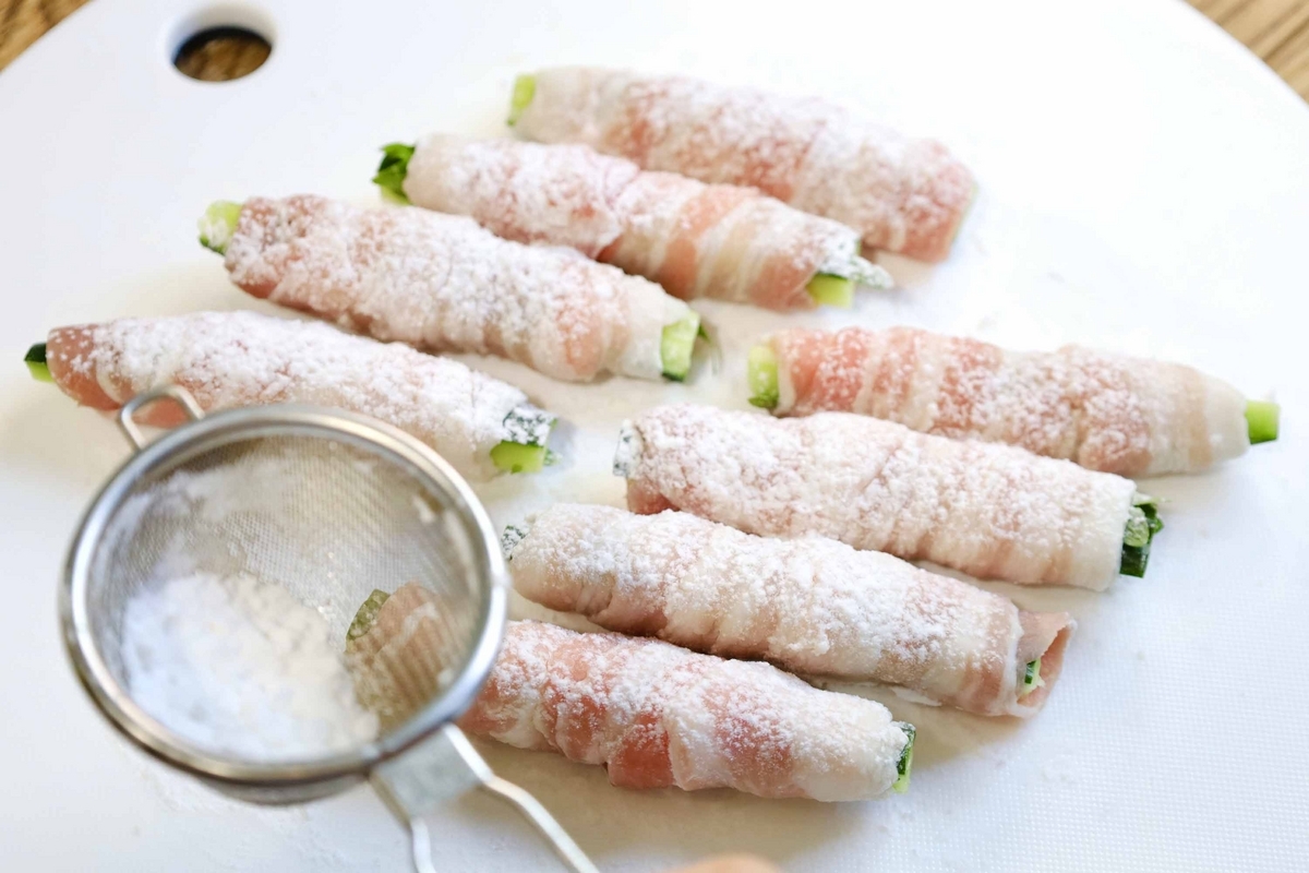 片栗粉をふった豚バラ肉で巻き巻き~!