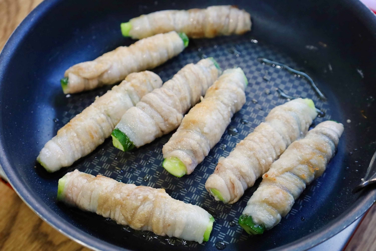 きゅうりの芯まで火がと取らなくても、豚肉に火が通っていればOK!