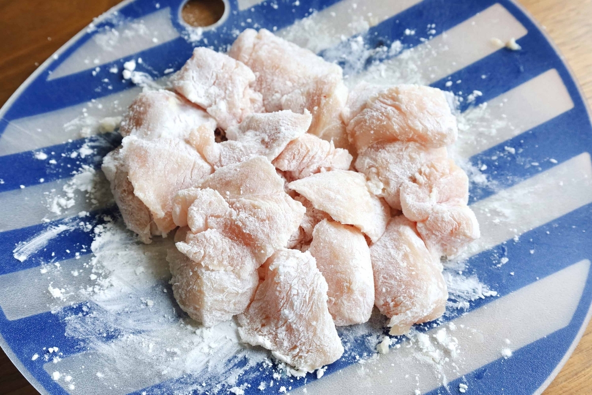 片栗粉大さじ2を全体にまぶします