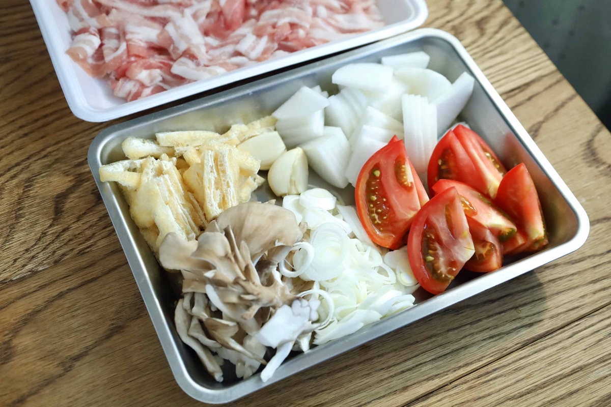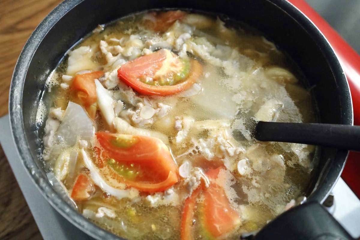 こちらも豚汁同様、最後にトマトを入れるのですが、ちょっぴりの酸味とジューシーさが加わって飽きずに食べれます。勿論、苦手な方は抜いてもらってもOK!(子供達もまだ温かいトマトは苦手なので、トマトを加える前に器によそっています🙌)