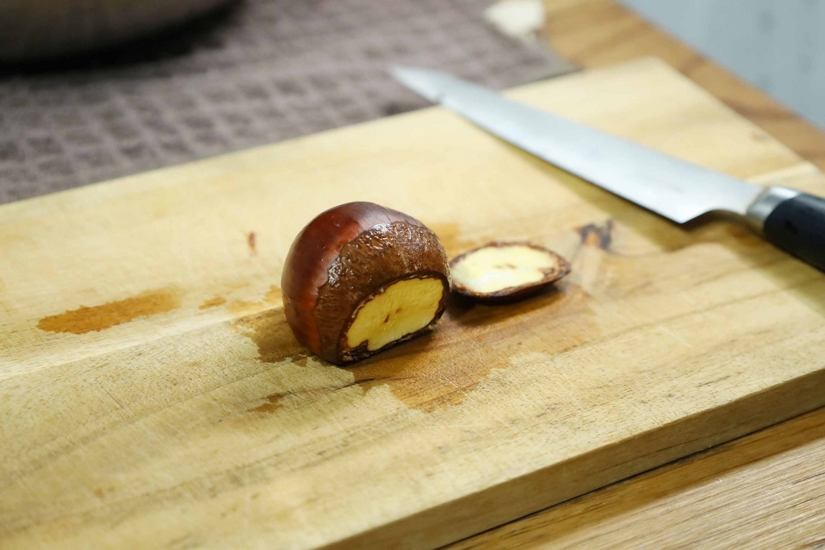 あとは包丁で、薄~く渋皮を剥いていきましょう!
