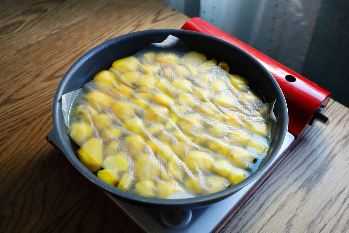 加熱後はこのまま半日程放置しておきましょう。最近は涼しくなってきたのでこのまま常温でもよいですが、暑い夜なんかは、粗熱が取れた後に落としラップ→冷蔵庫で保存してくださいね!
