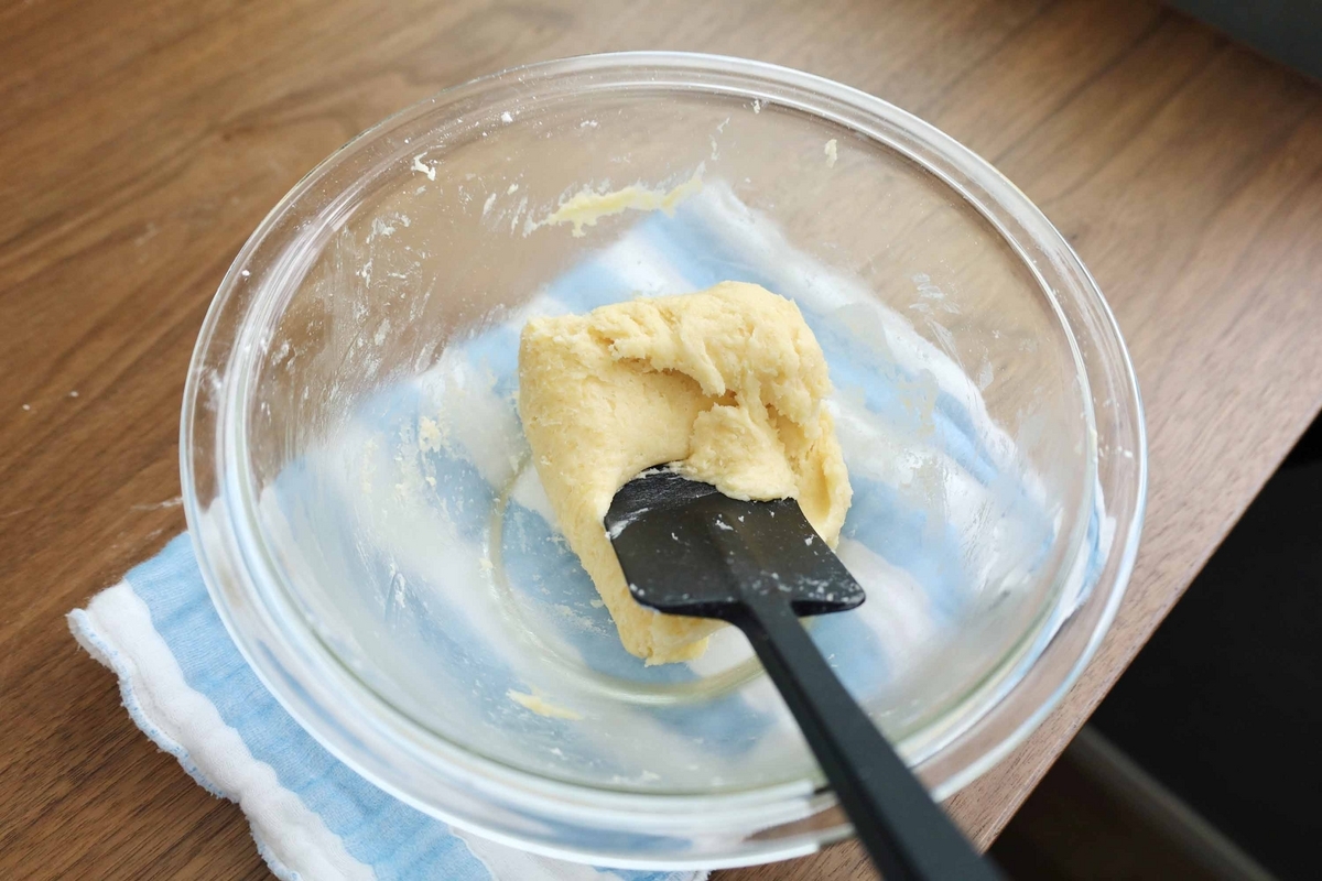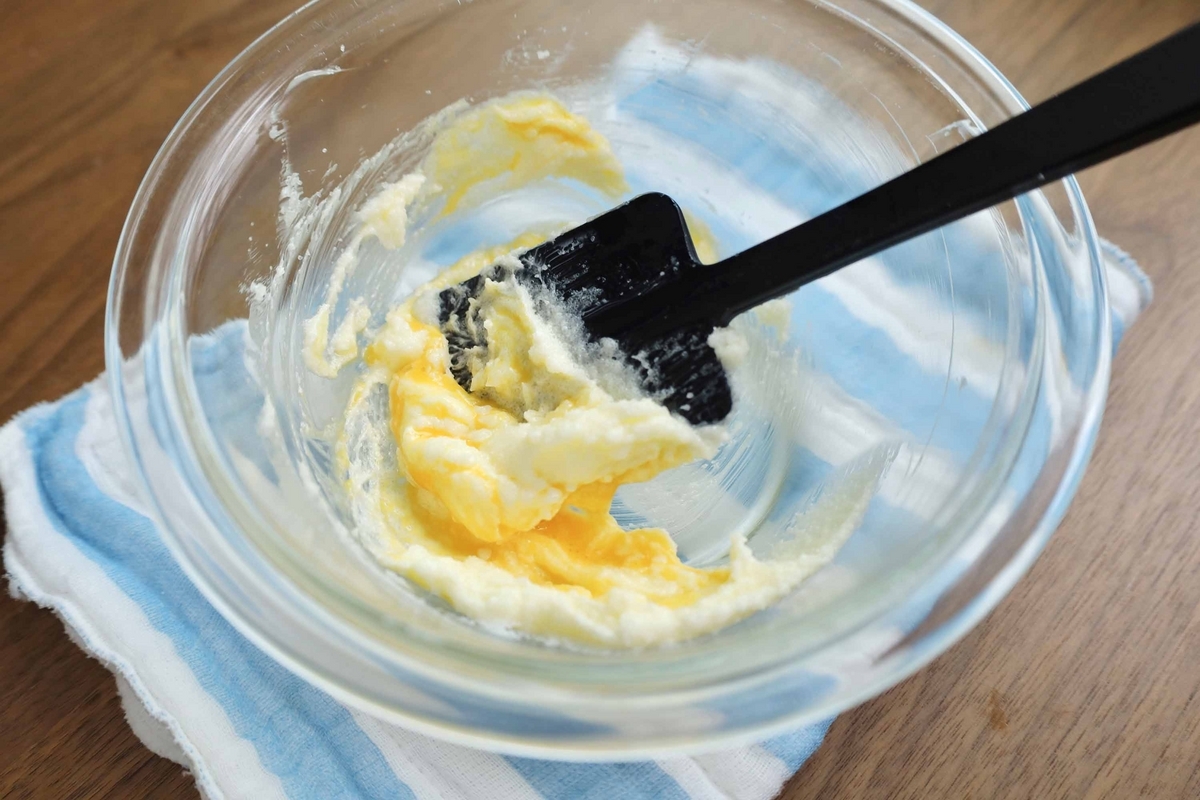 よく混ぜます。(卵は常温の方が、バターと綺麗に乳化しやすいです◎)