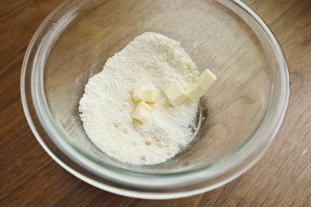 そうそう。タルトとアーモンドクリームの材料に「グラニュー糖or粉砂糖」と書いてありますが、本当なら粉砂糖の方がきめ細かな仕上がりになるのでオススメです。ただ、グラニュー糖でも作れるし、クランブルに使用する砂糖はグラニュー糖なので、少しでも材料少なく…の精神で「グラニュー糖推し」でレシピを書きました。本格的に作りたい方は、是非、砂糖も使い分けてみて下さい🍰