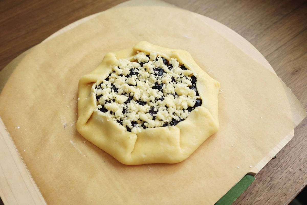 型がない分、中のアーモンドクリームはちょっぴり少なめにはなりますが、ばっちり作れます👍✨そしてタルトの食感がすごく良い!!!見た目も「折りたたむ=素朴」って感じで、自分は大好き。