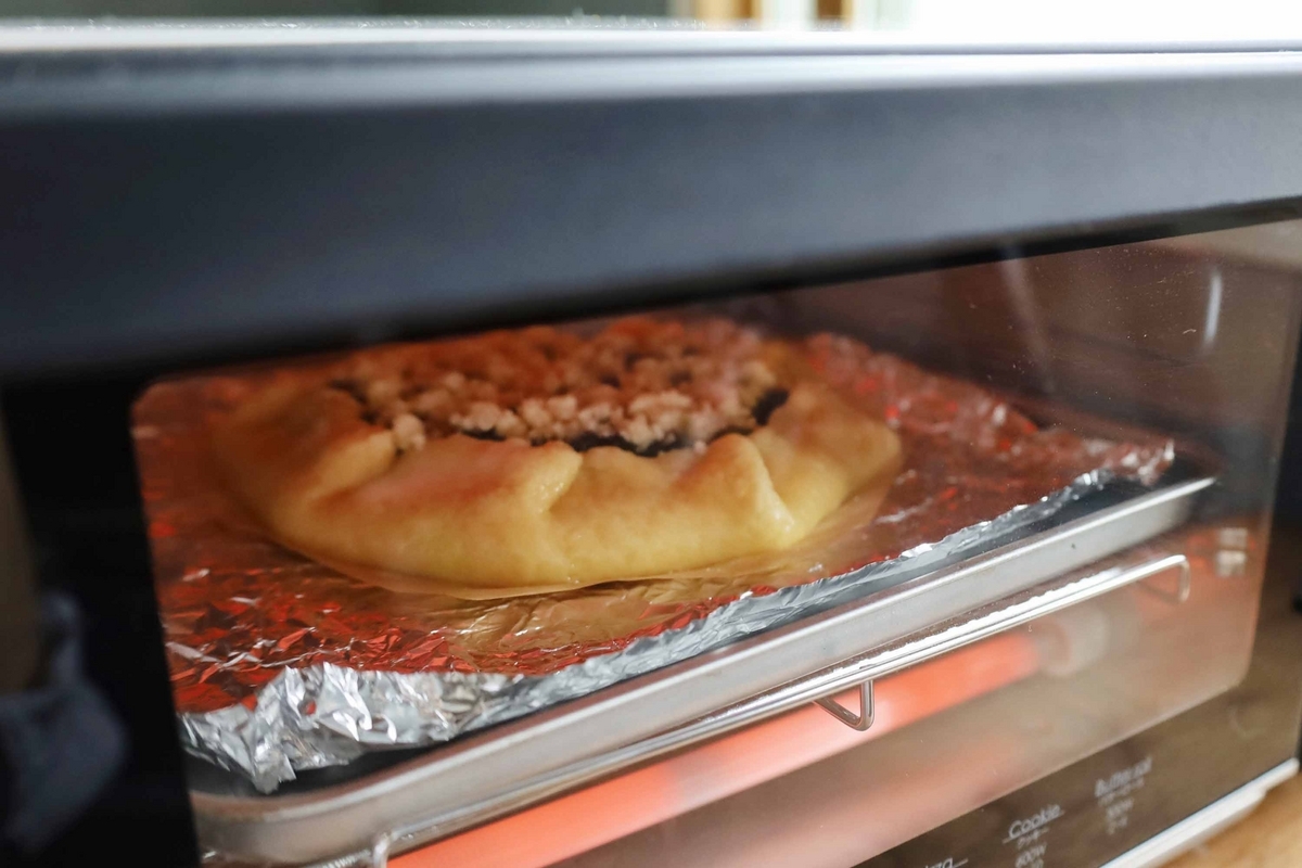 あとはアルミホイルを敷いたトレーの上にタルトをのせて、トースターで30分焼けば完成です…