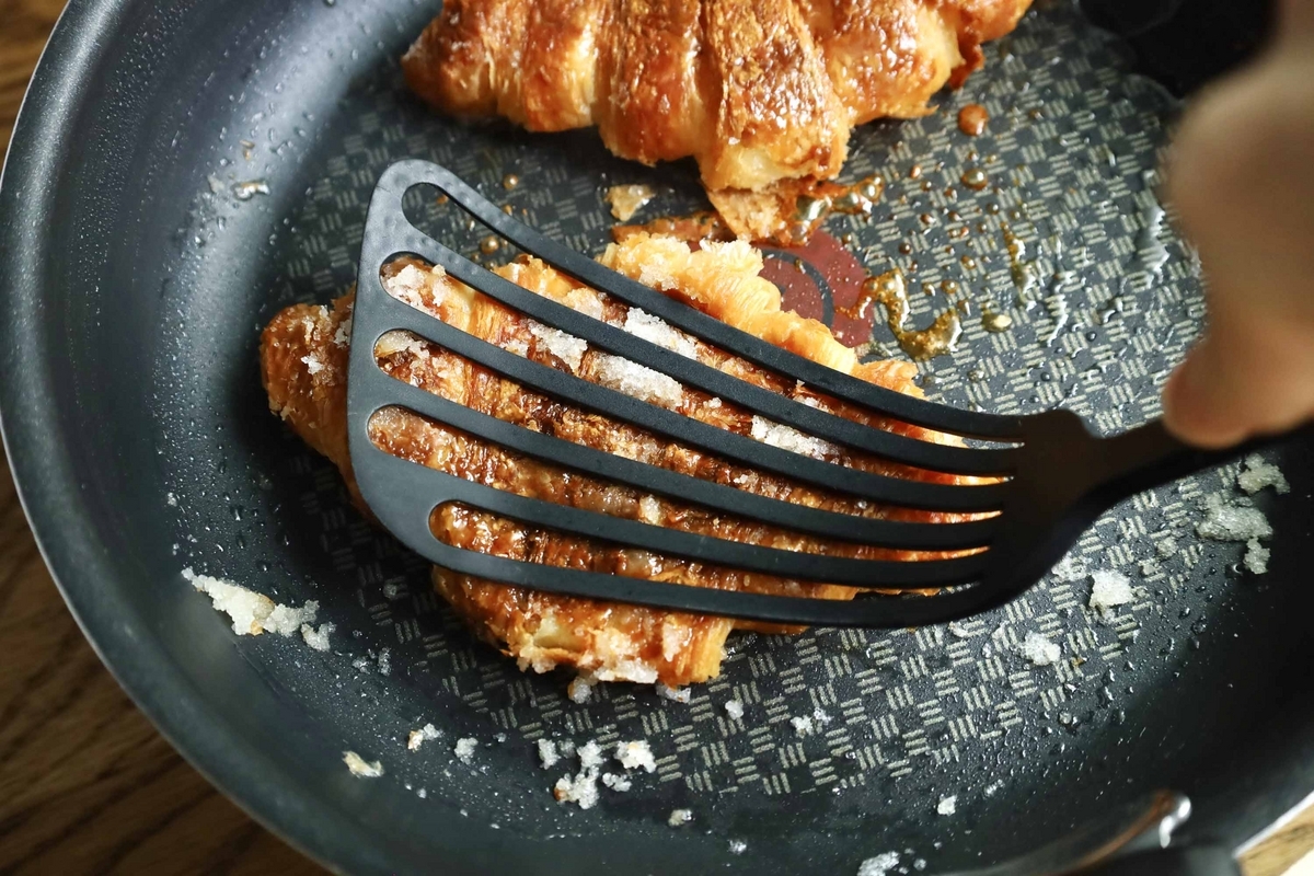 材料は、クロワッサン、砂糖、バターだけ!勇気を持ってギュ〜ッと潰しながら焼けば、バリバリ弾ける食感がとっても楽しい〜っっ✨