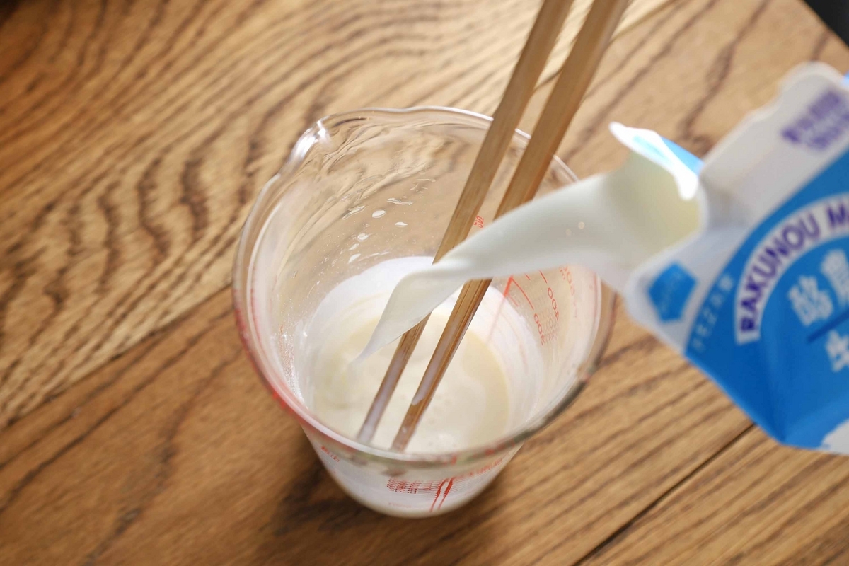 そこに牛乳200㏄をほんの少しずつ加えて混ぜていきます