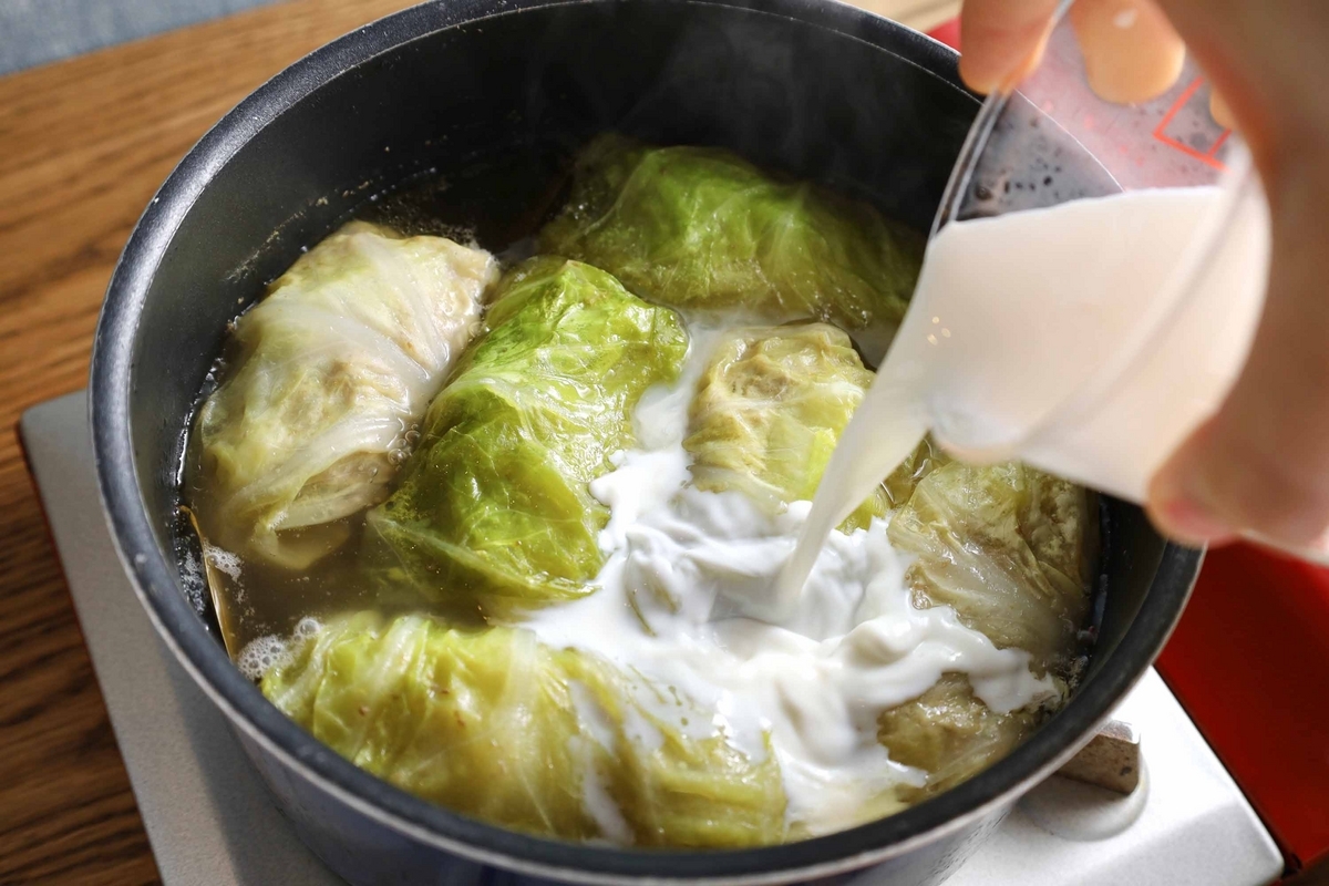 ロールキャベツを傷つけないように、優しく混ぜつつ加熱していきます。