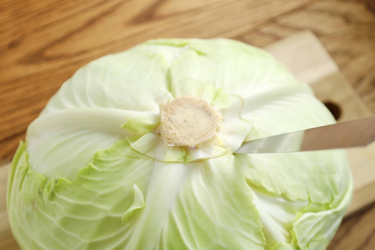 キャベツは根元に包丁を入れて