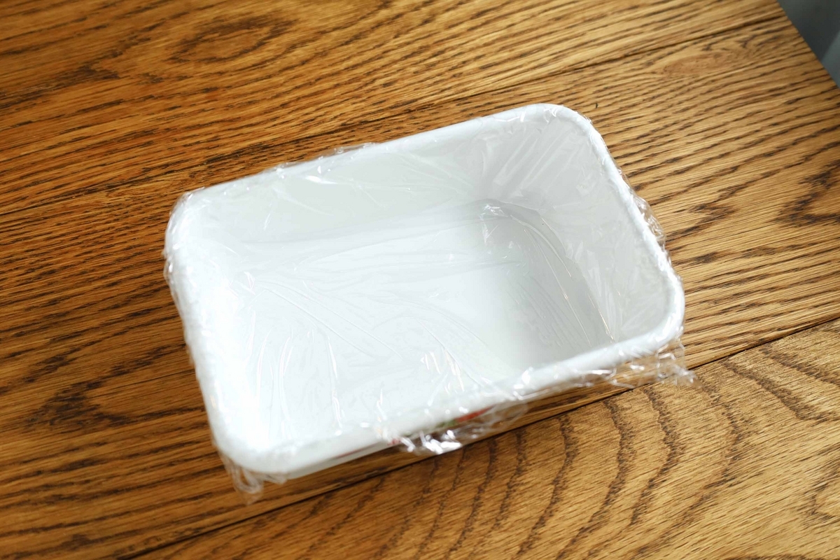 ゼラチンが溶けたら、ラップをひいた容器に