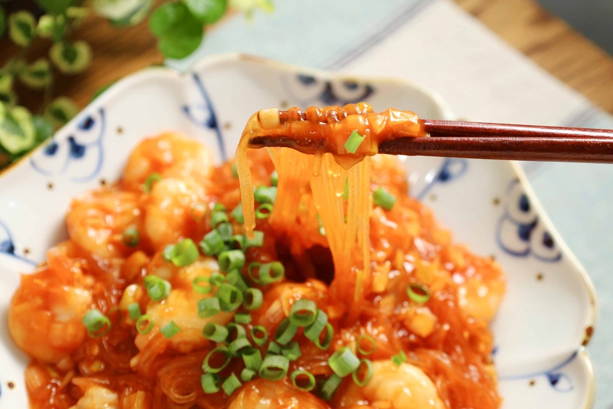 逆に言うと、時間が経つと春雨が水分を吸ってしまい、ソースがなくなってしまいます。なので、翌日食べるなどの作り置きには向きません!できれば作り立てを味わってほしい🦐✨