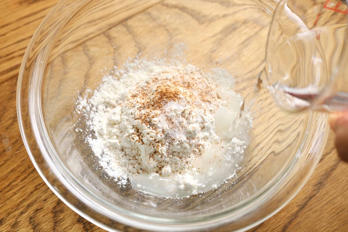 容器にCを入れてよく混ぜ、衣を作ったら(材料には書いていないのですが、ここにナツメグを数振り加えると、香りがグンとよくなります✨)