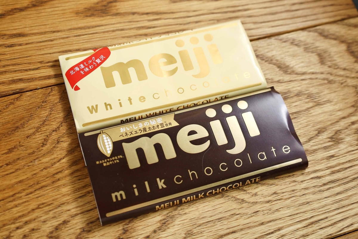 使用するのは、ミルク板チョコ1枚(50g)とホワイト板チョコ1枚(40g)!