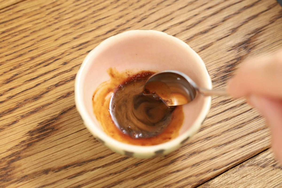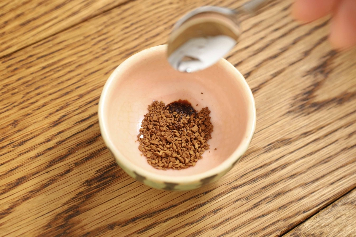 小皿にB(インスタントコーヒー小さじ1+お湯小さじ1/2)を入れて