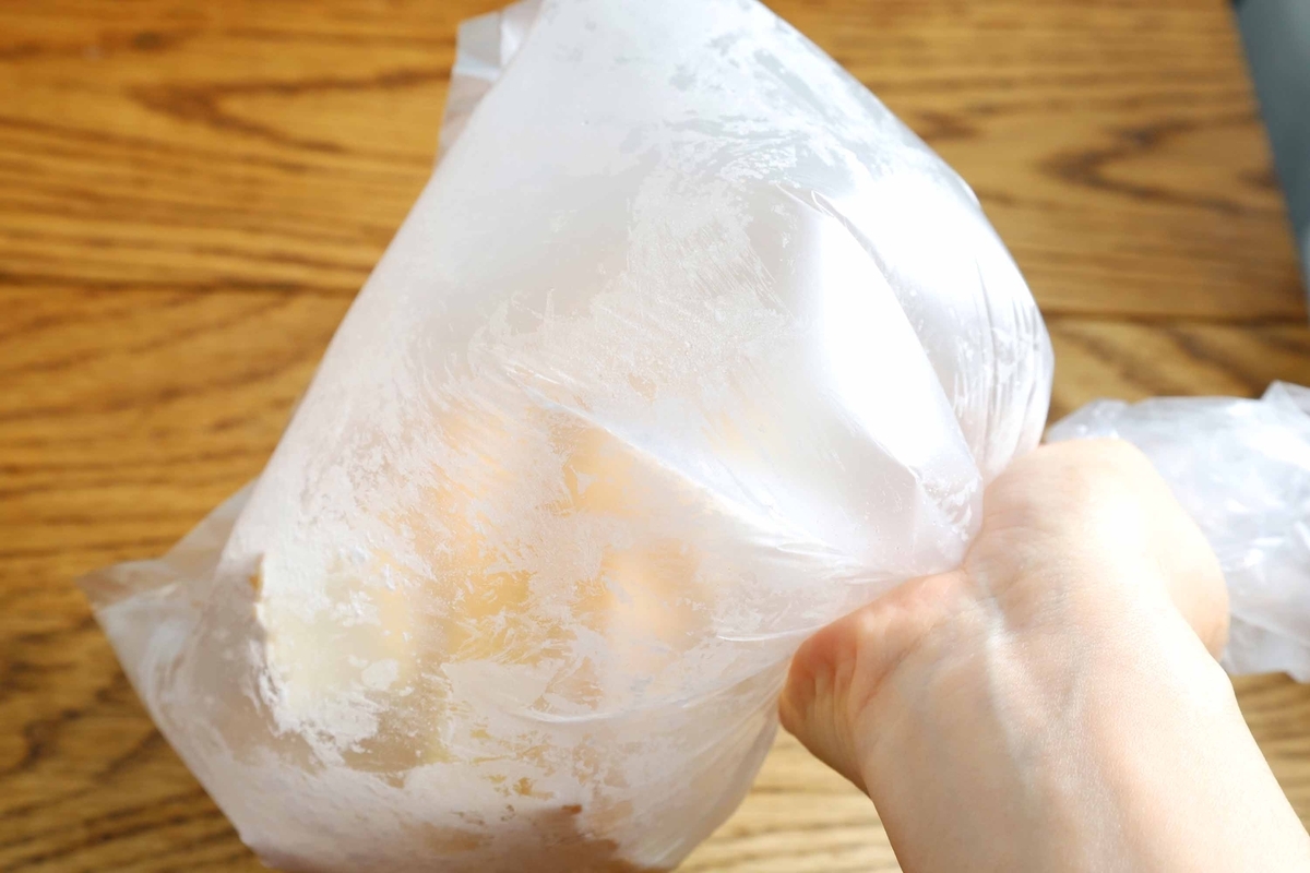 片栗粉大さじ3と一緒にポリ袋に入れて