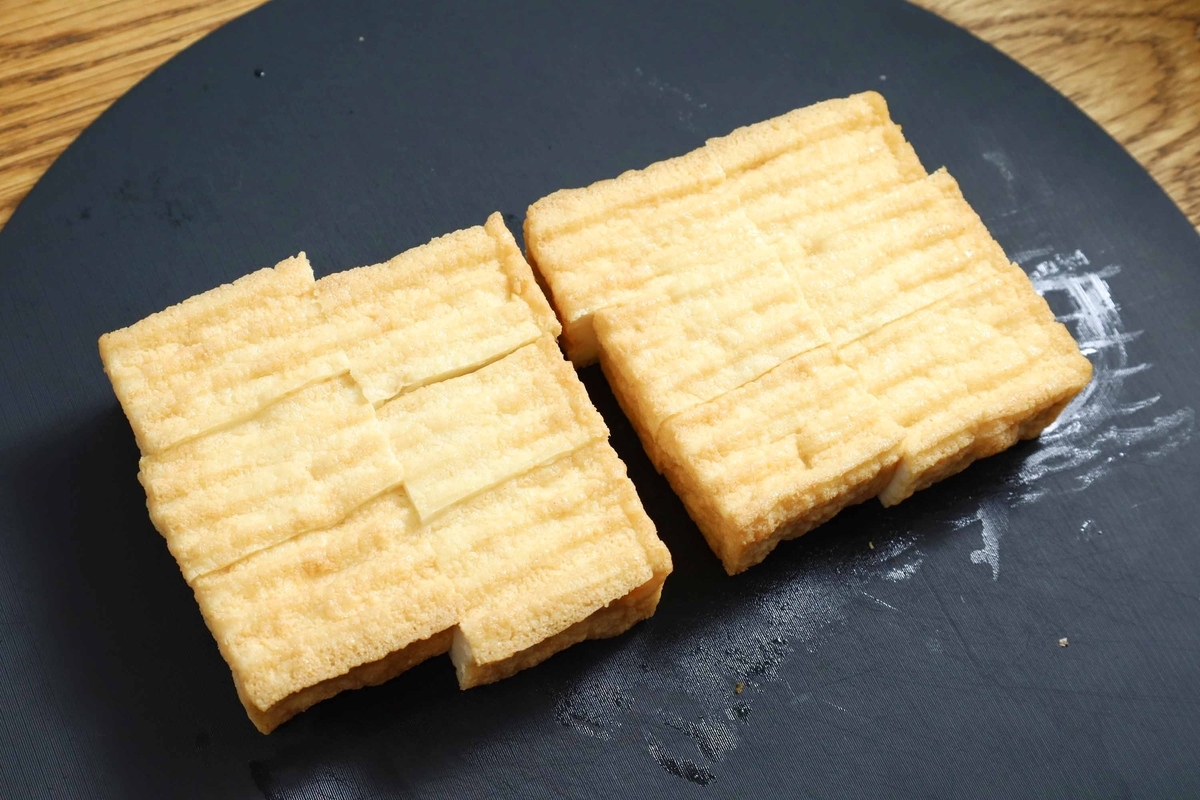 ちなみに我が家の推し厚揚げは、おかめ豆腐のモッチモチ食感のやつ!!これが本当に食べやすい。一度食べると戻れなくなる美味しさです。
