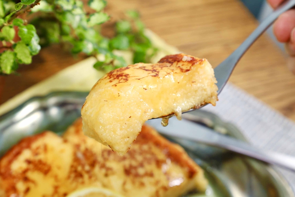 レモンスライスをフォークなどで軽くつぶしながら食べると、酸味が加わってまた違ったチーズケーキフレンチトーストを楽しむことができます◎