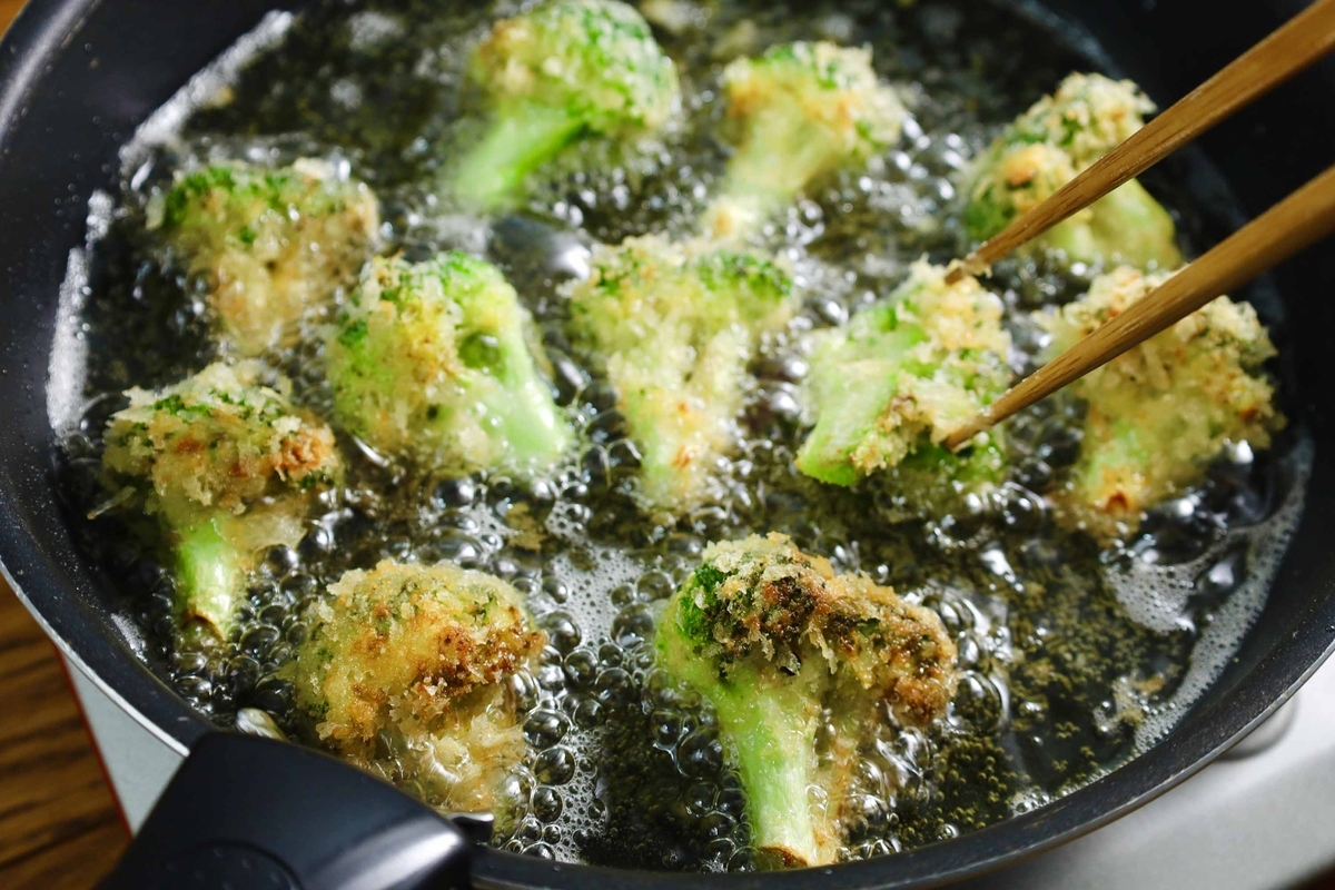 コンソメで下味をつけたブロッコリーに、粉チーズをまぶしたパン粉をまぶしてカラッと揚げるだけ!これを作ったら、大きめブロッコリー1株がぺろりとなくなりました✨